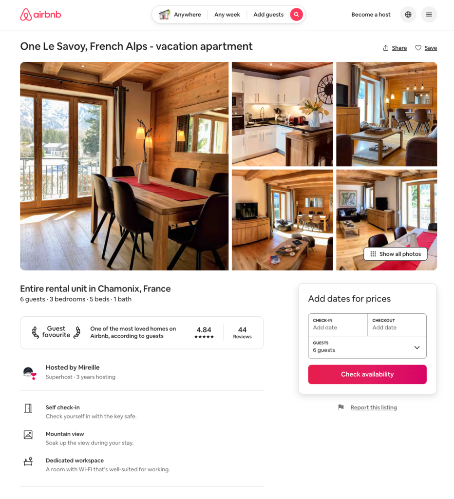 Booking Bookings are preferred via AirBnB and Booking.com Please contact us via these platforms with any questions. AirBnB.com Booking.com Interested in a longer stay? Contact “Season in the Alps” Share this: Share on X (Opens in new window) X Share on Facebook (Opens in new window) Facebook Like Loading...